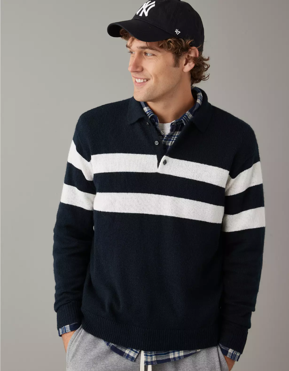 AE Super Soft Long-Sleeve Sweater Polo Shirt