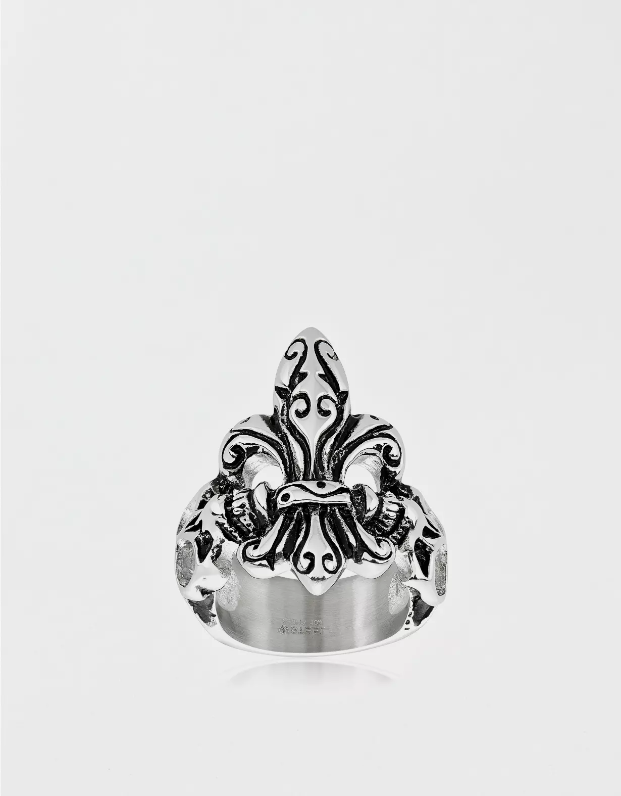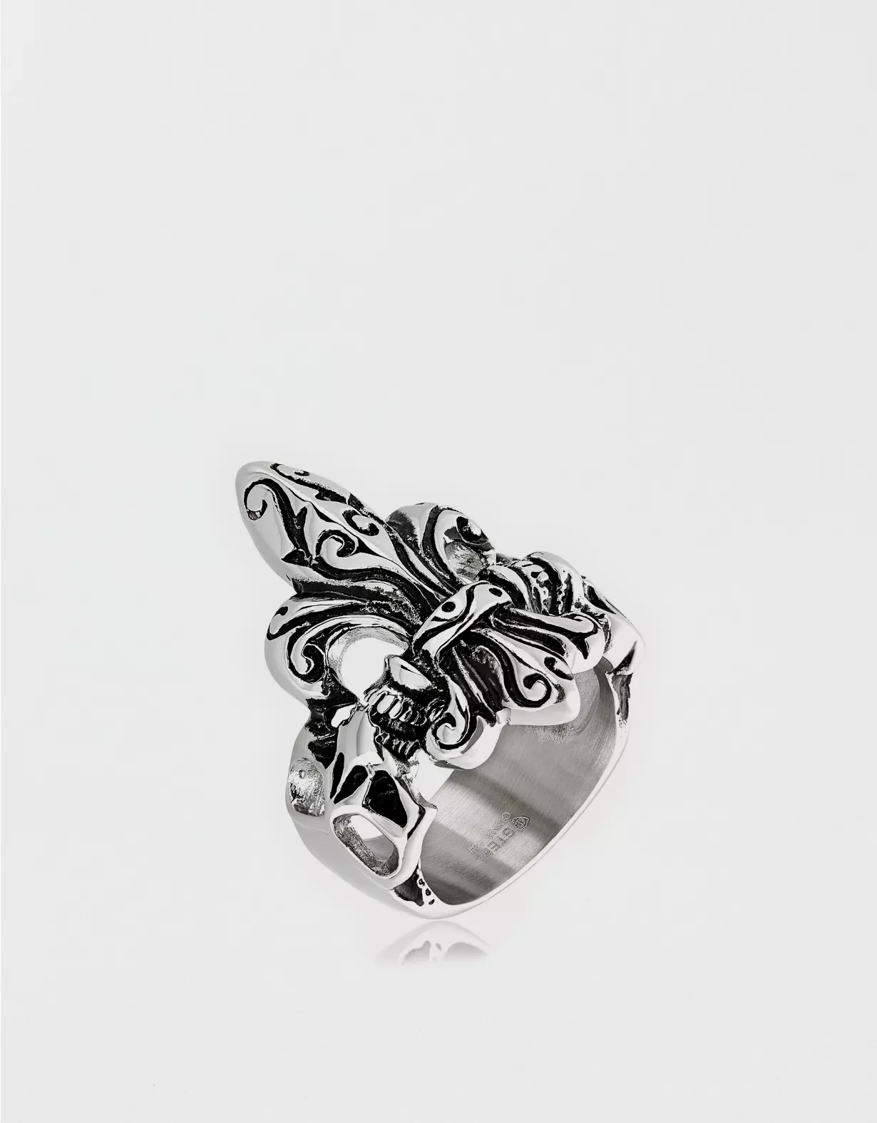 West Coast Jewelry Antique Stainless Steel Fleur De Lis Skull Ring